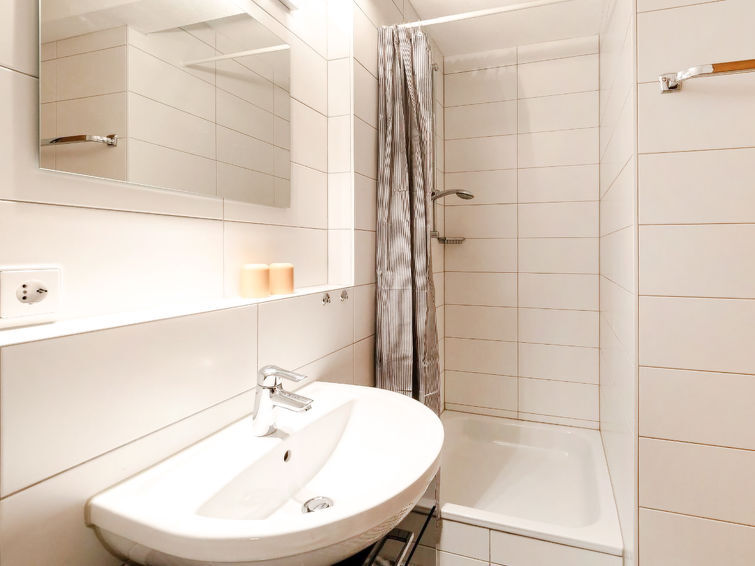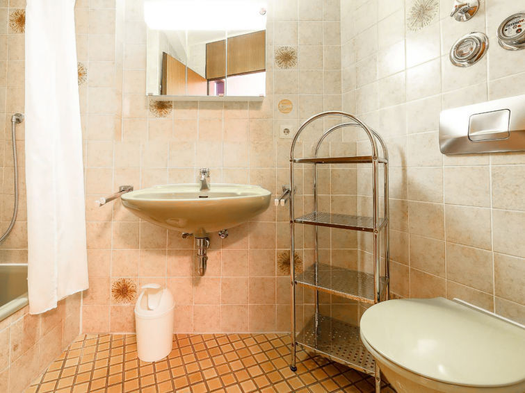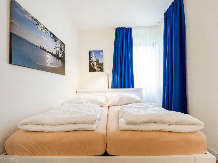 1-Zimmer-Wohnung 40 m2. Wohn-/Schlafzimmer mit 1 Doppelbett (160 cm, Länge 200 cm), Sat-TV und Radio. Kochnische (2 Kochplatten, elektrische Kaffeemaschine). Bad oder Dusche/WC. Balkon oder Terrasse. Terrassenmöbel, Balkonmöbel. Zur Verfügung: Internet (Wireless LAN, gratis). Bitte beachten: Nichtraucher-Unterkunft. Maximal 1 kleines Haustier/Hund erlaubt. Anstelle eines Doppelbettes kann auch ein Doppelschrankbett vorhanden sein. Wohnung im Appartementhaus.