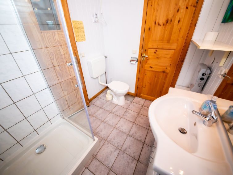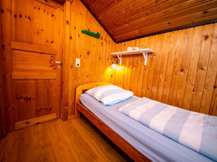 4-Zimmer-Doppelhaushälfte 70 m2 auf 2 Stockwerken, im Erdgeschoss. Wohn-/Esszimmer mit Schwedenofen und Sat-TV (Flachbildschirm), Radio und DVD. Ausgang zum Garten, zur Terrasse. 1 Zimmer mit 1 Doppelbett (2 x 80 cm, Länge 200 cm). Kochnische (Backofen, 4 Glaskeramikplatten, Mikrowelle, elektrische Kaffeemaschine). Dusche/WC. Obergeschoss: 1 abgeschrägtes Zimmer, ohne Schrank mit 1 Bett. 1 abgeschrägtes Doppelzimmer, ohne Schrank mit 1 Doppelbett (2 x 90 cm, Länge 200 cm). E-Heizung. Terrasse überdacht. Terrassenmöbel, Liegestühle (2), Abstellkammer. Zur Verfügung: Sauna, Bügeleisen, Kinderhochstuhl, Holz (extra). Internet (WLAN, gratis). Bitte beachten: Nichtraucher-Haus. Maximal 2 kleine Haustiere/Hunde erlaubt. Der gemeinsame Kleiderschrank für das Einzel- und Doppelzimmer befindet sich im kleinen Flur im Obergeschoss. Badezimmer mit Zugang zur Sauna. 1 reservierter Parkplatz in 20 m Entfernung vom Haus. Buchungen sind nur zu touristischen Zwecken erlaubt.