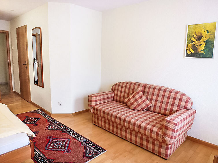 2-Zimmer-Wohnung 50 m2 im 1. Stock. Objekt geeignet für 2 Erwachsene + 2 Kinder. Kleines Wohn-/Schlafzimmer mit 1 Bett, 1 Diwanbett, Esstisch, Dusche/WC und Sat-TV. 1 Doppelzimmer mit Dusche/WC und Sat-TV. Kleine Kochnische im Eingang (2 Kochplatten, elektrische Kaffeemaschine). Zur Verfügung: Internet (Wireless LAN, gratis). Bitte beachten: Nichtraucher-Unterkunft. Maximal 1 Haustier/Hund erlaubt.
