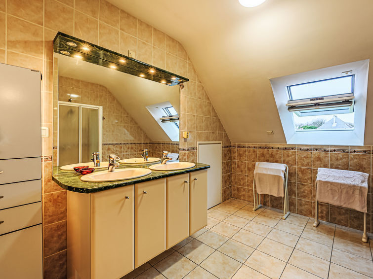 Guidel: Zweifamilienhaus "Le Prat", auf 2 Stockwerken. 1 km vom Zentrum von Guidel, 3.8 km vom Meer, 3.8 km vom Strand. Lebensmittelgeschäft, Supermarkt 350 m, Restaurant 1 km, Bar 1 km, Bäckerei 1 km, Café 1 km, Bushaltestelle "Guidel centre" 1 km, Sandstrand "Guidel Plages" 4.5 km, Hallenbad 500 m. Nahe gelegene Sehenswürdigkeiten: Port de Guidel 4 km, Plage du Fort Bloqué 5 km, Lorient 15 km, Iles de Groix, Belle Ile en Mer.