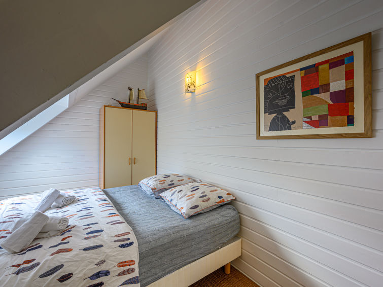 Dreifamilienhaus "Villa Pyramide I", auf 3 Stockwerken. Am Ortsrand, 2 km vom Zentrum von Saint-Philibert, ruhige Lage, 50 m vom Meer, vom Strand, in einer Sackgasse. Zur Mitbenutzung: Tennis. Zur Alleinbenutzung: gepflegter Garten 300 m2, Schwimmbad beheizt (11 x 5 m, 150 - 150 cm tief, saisonale Verfügbarkeit: 15.Mai. - 15.Okt.) mit Innentreppe und Alarmanlage. Parkplatz (für 5 Autos) beim Haus. Lebensmittelgeschäft 2 km, Restaurant 2 km, Bäckerei 2 km, Café 2 km, Sandstrand "Kernevest" 900 m. Sporthafen 1.5 km, Golfplatz (18 Loch) 12 km, Segelschule 900 m, Wanderwege ab Haus 50 m. Nahe gelegene Sehenswürdigkeiten: La Trinité-sur-mer 2 km, Carnac et ses alignements 7 km, Auray - Port de St Goustan 15 km, Presqu'île de Quiberon 25 km, Vannes 25 km, Belle-île, Houat et Hoëdic. Wandergebiete: Golfe du Morbihan 20 km.