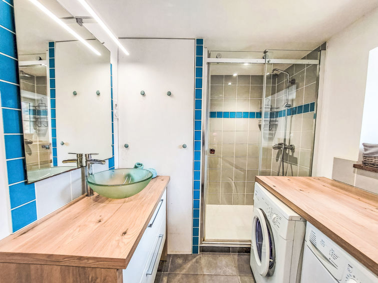 5-Zimmer-Haus 150 m2 auf 2 Stockwerken. Schön eingerichtet: grosses Wohn-/Esszimmer 25 m2 mit offenem Kamin, TV, Stereoanlage und DVD. Ausgang zur Terrasse. Küche (Backofen, Geschirrspüler, 4 Flammen, Toaster, Wasserkocher, Mikrowelle, Tiefkühler, elektrische Kaffeemaschine, Kapseln für die Kaffeemaschine (Nespresso), Kochinsel). Ausgang zum Garten, zur Terrasse. Dusche, sep. WC. E-Heizung. Obergeschoss: 1 Kinderzimmer mit 1 Bett (90 cm), 1 Ausziehbett (2 Pers. 2 x 90 cm). 2 Zimmer, jedes Zimmer mit 1 franz. Bett (160 cm). Galerie mit 2 Betten (90 cm). Bad/Dusche, sep. WC mit Eckbadewanne. Terrasse 20 m2. Terrassenmöbel, Gartengrill, Liegestühle (6), Abstellkammer. Sicht auf den Garten. Zur Verfügung: Waschmaschine, Wäschetrockner, Kinderhochstuhl, Babybett bis 2 Jahre. Internet (WLAN, gratis). Parkplatz beim Haus. Bitte beachten: geeignet für Familien. Nichtraucher-Haus. Maximal 1 Haustier/Hund erlaubt. Rauchmelder. Vom Schlafzimmer mit einem Bett und 1 Ausziehbett haben Sie über eine Treppe Zugang zu der Galerie mi 2 Betten. Anstelle eines abgeschlossenen Schlafzimmers befinden sich manche Schlafplätze in einem offenen Bereich (Galerie, Nische etc.).