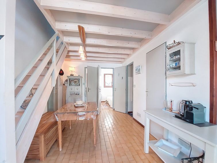 4-Zimmer-Reihenhaus 59 m2 auf 2 Stockwerken. Wohn-/Esszimmer. Ausgang zur Terrasse. 1 Zimmer mit 1 franz. Bett (1 x 140 cm, Länge 190 cm). 1 kleines Kinderzimmer mit 1 x 2 Etagenbetten (90 cm, Länge 190 cm). Durchgangszimmer, ohne Fenster mit 1 Doppeldiwanbett (1 x 140 cm, Länge 190 cm). Kochnische (2 Glaskeramikplatten, Toaster, Wasserkocher, Mikrowelle, elektrische Kaffeemaschine). Bad, sep. WC. E-Heizung. Obergeschoss: abgeschrägte Galerie mit TV (Flachbildschirm). Terrasse 15 m2, Gartensitzplatz 50 m2. Terrassenmöbel, Gartengrill. Zur Verfügung: Internet (WLAN, extra). Parkplatz Nr. 17. Bitte beachten: Nichtraucher-Unterkunft. 1 kleines Haustier/Hund erlaubt. Rauchmelder. Inserat einer Privatperson nach Artikel 155, IV, CGI.