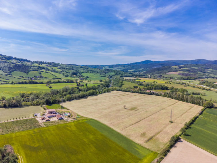Diese schöne, liebevoll restaurierte Anlage liegt mitten in den Feldern des Val di Cecina, nur ein paar Schritte vom gleichnamigen Flusslauf entfernt. Besonders viel Aufmerksamkeit wurde beim Bau des Pools gelegt, wo ein Sprudelbad (ca. 11 Personen) und ein Kinderbecken in Stein gemeisselt, entstanden sind. Ferienanlage "Podere la Querciola", auf 2 Stockwerken, renoviert im Jahre 2021, umgeben von Wiesen und Feldern. Im Ortsteil Casino di Terra, 11 km vom Zentrum von Guardistallo, 14 km vom Zentrum von Cecina, alleinstehende, ruhige Lage, 16 km vom Meer. Zur Mitbenutzung: Grundstück mit Pflanzen und Bäumen, Schwimmbad (6 x 11 m, 150 cm tief, saisonale Verfügbarkeit: 01.Mai. - 15.Okt.). Kinderbecken, Aussendusche, Sprudelbad, Gartenmöbel, Grill. In der Anlage: Wireless LAN, Waschmaschine (extra). Zufahrt (700 m Naturweg). Parkplatz. Einkaufsgeschäft 11 km, Restaurant 2 km, Bar 2 km, Bushaltestelle 1.1 km, Sandstrand "Marina di Cecina" 16 km. Nahe gelegene Sehenswürdigkeiten: Volterra 24 km, Pisa 70 km, Firenze 100 m.