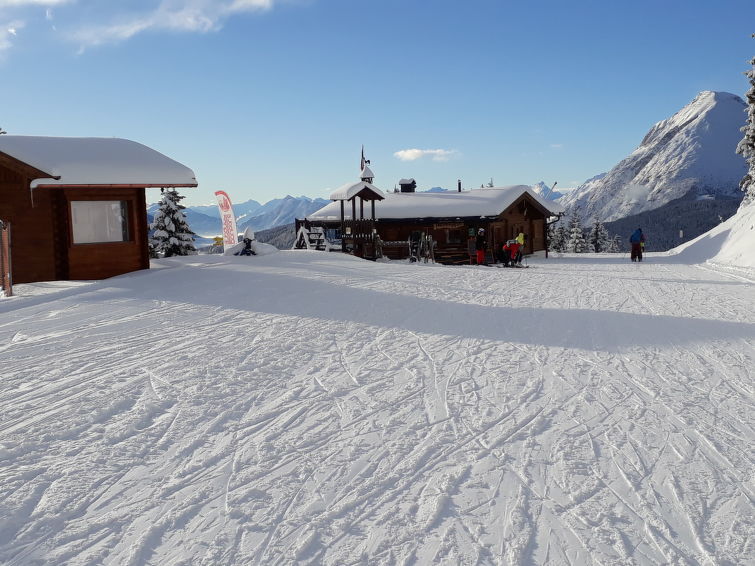 3-Zimmer-Wohnung 64 m2, im erhöhten Erdgeschoss. Schön und stilvoll eingerichtet: grosses Wohn-/Esszimmer mit 2 Ausziehbetten, Esstisch und Kabel-TV (Flachbildschirm), Radio. Ausgang zum Balkon. Grosses Wohn-/Schlafzimmer mit 1 Doppeldiwanbett und Kabel-TV (Flachbildschirm). Ausgang zum Balkon. Kochnische im Eingang (Geschirrspüler, 2 Induktionskochplatten, Toaster, Wasserkocher, Mikrowelle, Tiefkühler, Grill, elektrische Kaffeemaschine). Bad/WC, Dusche/WC. 2 kleine Balkone, Ostlage. Balkonmöbel. Schöne Sicht auf die Berge und den Garten. Bitte beachten: Nichtraucher-Unterkunft. Rauchmelder. Achtung: Keine Haustiere erlaubt. Schlafgelegenheiten in der Unterkunft sind keine vollwertigen Betten!