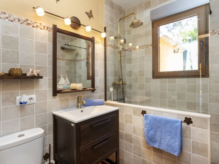 "Ca La Lou", 4-Zimmer-Haus 75 m2. Geräumig, sehr zweckmässig und gemütlich eingerichtet: Wohn-/Esszimmer mit Esstisch, Internationale TV-Sender und Holzofen. Ausgang zum Gartensitzplatz, zum Schwimmbad. 1 Doppelzimmer mit 1 franz. Bett (140 cm, Länge 200 cm), E-Heizung. 1 Doppelzimmer mit 2 Betten (90 cm, Länge 200 cm), E-Heizung. 1 Kinderzimmer mit 1 x 2 Etagenbetten (90 cm, Länge 200 cm), E-Heizung. Küche (Backofen, Geschirrspüler, 3 Glaskeramikplatten, Toaster, Wasserkocher, Mikrowelle, Tiefkühler, elektrische Kaffeemaschine). Dusche/WC. Terrassenmöbel, Gartengrill, Liegestühle, Loggia. Sicht auf die Ortschaft. Zur Verfügung: Waschmaschine, Bügeleisen, Kinderhochstuhl, Babybett bis 2 Jahre, Haartrockner. Internet (WLAN, gratis). Bitte beachten: geeignet für Familien. Maximal 1 Haustier/Hund erlaubt. TV nur ES. HUTG-058266 // Reg. Nr.: ESFCTU00001701800073935600000000000000000HUTG-0582664