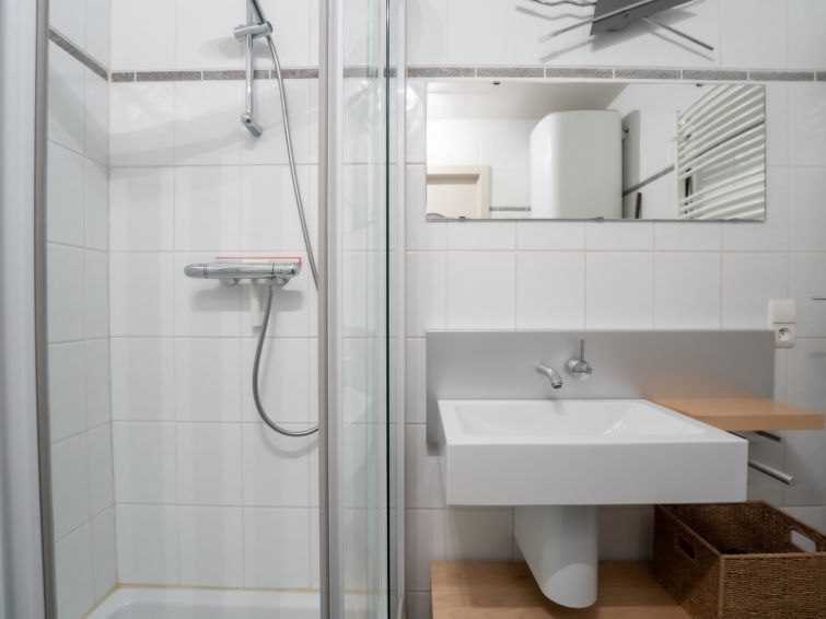 "Deauville II", appartement 2-kamers 45 m2 op de 2e verdieping. Comfortabel en modern ingericht: open woon-/slaapkamer met 1 x 2 stapelbedden (90 cm, lengte 200 cm), eettafel, Digitale TV en internationale TV-zenders. Uitgang naar het balkon. 1 2-pers. kamer met 1 2-pers bed (160 cm, lengte 200 cm). Open keuken (afwasmachine, 4 keramische glas kookplaten, broodrooster, waterkoker, magnetron, elektrische koffiemachine). Douche/WC. Verwarming. Balkonmeubilair. Ter beschikking: haardroger. Internet (Internet (WiFi), gratis). Parkeerplaats nr. 49 (1 Auto). Rookvrij huis. Rookmelders, brandblusser.