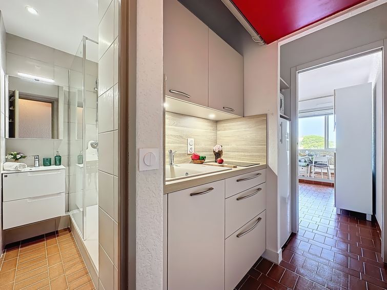 Residentie "Le Quai aux Fleurs". In de wijk Plage Sud, 500 m van zee, 500 m van het strand. Voor medegebruik: openluchtzwembad rond (80 - 240 cm diepte, seizoensgebonden beschikbaarheid: 15.Jun. - 15.Sep.). Kinderzwembad, barbecue, parkeerplaats (beperkt aantal), openbare parkeerplaatsen 150 m. Levensmiddelenwinkel 400 m, supermarkt 3 km, restaurant 400 m, bushalte "Quai aux Fleurs" 10 m, treinstation 3.5 km, zandstrand 450 m, thermaalbad "Thalazur" 800 m. Jachthaven 500 m, jachthaven 30 m, zeilschool 2 km, tennis 1.5 km. Attracties in de buurt: Casino Flamingo 2 km, Seaquarium 2 km, les arènes du Grau du Roi 3 km, Aigues-Mortes 10 km, La grande Motte 15 km, Nîmes 52 km. Wandelgebied La réserve naturelle de Camargue. De sleuteloverdracht vindt plaats bij het agentschap Interhome in Port Camargue. Vliegveld 24 km van het huis.