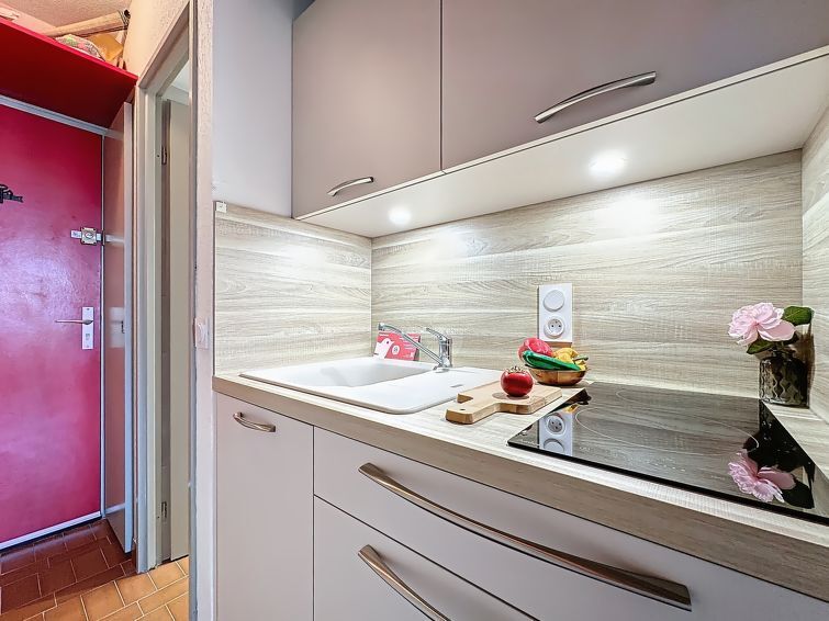 Appartement 1-kamer 26 m2 op de 1e verdieping. Studio met 1 2-pers divanbed (140 cm, lengte 190 cm), 1 2-pers opklapbed (2 x 80 cm, lengte 200 cm), kookhoek, TV en Flatscreen TV. Uitgang naar de loggia, op het zuiden en op het oosten. Kleine keuken in de hal (2 inductiekookplaten, broodrooster, waterkoker, diepvriezer, elektrische koffiemachine, combimagnetron). Douche/WC. Elektrische verwarming. Balkonmeubilair, loggia. Ter beschikking: wasmachine. Internet (WiFi, gratis). Parkeerplaats (1 Auto). Niet rokers woning. Maximaal 1 klein huisdier/hond toegestaan. Rookmelders, geen lift. Aanbod door een particulier volgens art. 155, IV van CGI. 30133000994BN