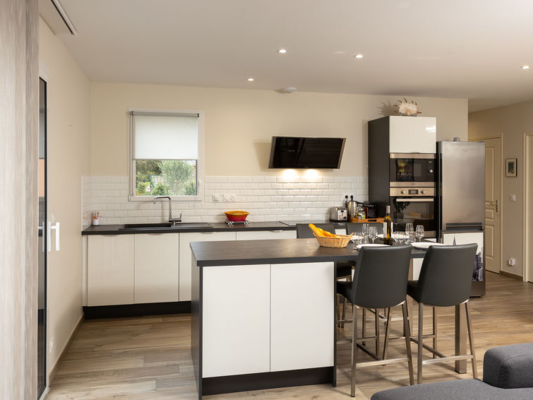 Huis 3-kamers 72 m2. Mooi en smaakvol ingericht: groot woon-/eetkamer 35 m2 met TV (Flatscreen TV). Uitgang naar het terras. 1 kamer met Kleedkamer met 1 2-pers bed (1 x 140 cm, lengte 190 cm), TV (Flatscreen TV). 1 kamer met Kleedkamer met 1 2-pers bed (1 x 140 cm, lengte 190 cm). Open keuken (oven, afwasmachine, 3 inductiekookplaten, broodrooster, magnetron, diepvriezer, elektrische koffiemachine, pads voor de koffiemachine (Nespresso) extra). Douche, aparte WC. Terras, tuin 320 m2, op het zuiden gelegen. Terrasmeubelen, barbecue. Ter beschikking: wasmachine, strijkijzer. Internet (Internet (WiFi), gratis). Niet rokers woning. Rookmelders. Aanbod door een particulier volgens art. 155, IV van CGI.