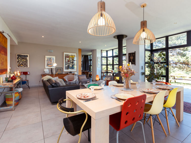 Huis 8-kamers 240 m2 op 2 verdiepingen. Comfortabel en smaakvol ingericht: groot woon-/eetkamer met open haard (alleen decoratie), TV (Flatscreen TV). Uitgang naar het terras. Kleine salon. Uitgang naar het terras. Open keuken (oven, afwasmachine, 3 inductiekookplaten, broodrooster, waterkoker, magnetron, diepvriezer, elektrische koffiemachine). Uitgang naar het terras. Douche, aparte WC. Bovenverdieping: 1 groot kamer met Kleedkamer met 1 2-pers bed (1 x 160 cm, lengte 200 cm). 1 kamer met 1 bed (90 cm, lengte 190 cm), 1 2-pers bed (1 x 140 cm, lengte 190 cm). 1 kamer met 1 2-pers bed (1 x 140 cm, lengte 190 cm). 1 groot kamer met 2 bedden (90 cm, lengte 190 cm), 2 2-pers bedden (1 x 140 cm, lengte 190 cm). (wenteltrap), 1 kamer met afgeschuinde daken met 1 2-pers bed (1 x 140 cm, lengte 190 cm). Badkamer, aparte WC. Groot terras, op het zuiden gelegen. Terrasmeubelen, barbecue, ligstoelen. Zeer mooi uitzicht op zee. Ter beschikking: wasmachine, strijkijzer, kinderbed, haardroger. Internet (Internet (WiFi), gratis). Garage op het terrein. Rookvrij huis. Rookmelders. Aanbod door een particulier volgens art. 155, IV van CGI.