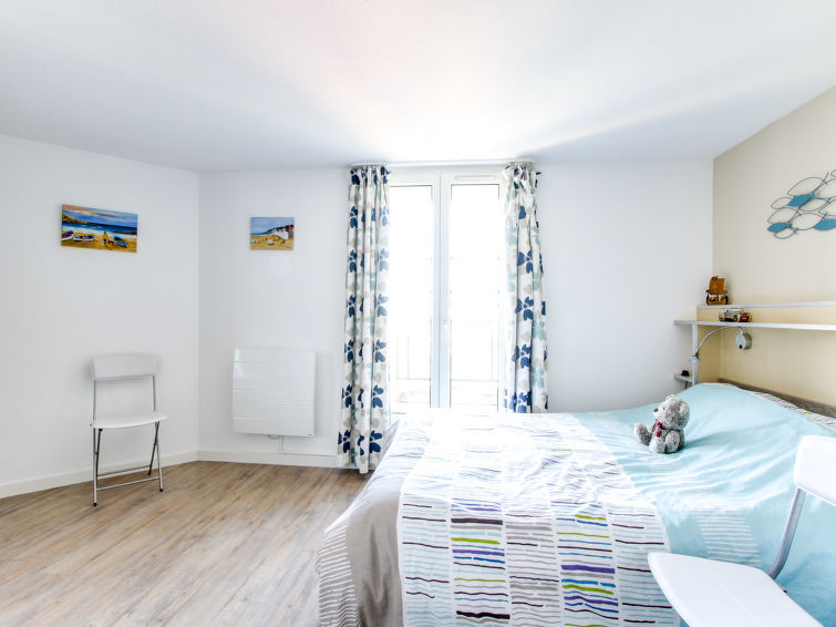 Appartement 2-kamers 35 m2 op 2 verdiepingen op de 2e verdieping, op het noordwesten gelegen. Woon-/eetkamer met TV (Flatscreen TV), elektrische rolluiken. Uitgang naar het balkon. Kookhoek (afwasmachine, 3 inductiekookplaten, broodrooster, waterkoker, magnetron, diepvriezer, elektrische koffiemachine) met bar. Aparte WC. Elektrische verwarming. Bovenverdieping: 1 kamer met 1 2-pers bed (140 cm, lengte 190 cm). Douche/WC. Parketvloeren. Balkon 5 m2. Balkonmeubilair. Mooi uitzicht in de verte op zee en de rivier. Ter beschikking: haardroger. Internet (Internet (WiFi), extra). Parkeerplaats nr. 2831. Rookmelders.