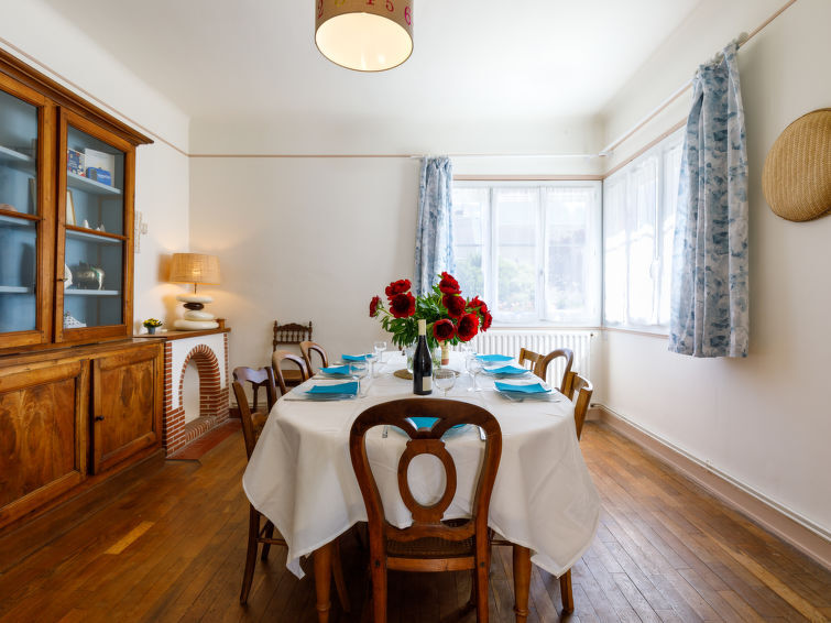 Villa 6-kamers 160 m2 op 3 verdiepingen. Zeer comfortabel ingericht: eetkamer met eettafel. 1 kamer met 1 2-pers divanbed (140 cm, lengte 190 cm). Open keuken (oven, afwasmachine, Gasfornuis, 4 kookpitten (vlammen), broodrooster, waterkoker, diepvriezer, elektrische koffiemachine). Uitgang naar het terras. Douche/WC. Bovenverdieping: groot woonkamer met TV (Flatscreen TV). 1 kamer met 1 2-pers bed (140 cm, lengte 190 cm). Badkamer, aparte WC. 2e Verdieping: 1 kamer met 2 bedden (90 cm, lengte 200 cm). 1 kamer met 2 stapelbedden (90 cm, lengte 200 cm), 1 uitschuifbaar bed (1 pers.). Aparte WC. Elektrische verwarming, gas-verwarming. Terras. Terrasmeubelen, barbecue (verrijdbaar), ligstoelen (4), bergruimte. Ter beschikking: wasmachine, droger, strijkijzer, kinderstoel, kinderbed tot 2 jaar, haardroger. Internet (WiFi, gratis). Rookvrij huis. Maximaal 1 huisdier/hond toegestaan. Rookmelders. Aanbod door een particulier volgens art. 155, IV van CGI. 4404900079711