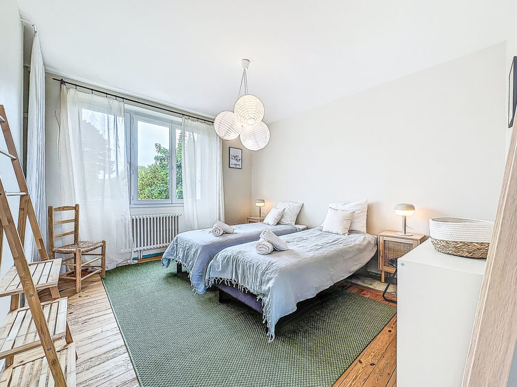Groot, mooi rijtjeshuis "La Nero", van 2 verdiepingen, gerenoveerd in 2025. In het centrum van Pornic, perfecte locatie: in het centrum en toch rustig gelegen, 800 m van zee, 1 km van het strand, op het zuiden. Voor alleengebruik: groot, verzorgde tuin 700 m2 (omheind). Terras (40 m2), tuinmeubelen, barbecue, openbare parkeerplaatsen in de straat. Supermarkt 100 m, restaurant 600 m, bakkerij 50 m, café 30 m, fietsverhuur 700 m, centrum te voet bereikbaar in 5 minuten, bushalte "Gare de Pornic" 600 m, treinstation "Pornic" 600 m, zandstrand "Plage de la Source" 1 km, overdekt zwembad 2 km, thermaalbad "Alliance Pornic Thalasso & Spa" 1 km. Jachthaven 600 m, golfterrein (18 holes) 3 km, zeilschool 2 km, midgetgolf 3 km, manege 4 km, sportcentrum 2 km, wandelroutes 1 km vanaf het huis. Attracties in de buurt: Faïencerie de Pornic 2 km, Pornic Aventure Accrobranche 3 km, Legendia Parc 20 km, Planète Sauvage 30 km, Les Machines de l'Ile de Nantes 49 km, Ile de Noirmoutier 59 km. Bekende meren kunnen gemakkelijk worden bereikt: Lac de Saint Viaud 20 km. Wandelgebied Sentier des Douaniers 1 km. De sleuteloverdracht vindt plaats bij het agentschap Interhome in Pornic, 1 km. De omgeving is gevoelig voor geluidsoverlast. Gelieve geen lawaai te maken en de rust te bewaren.