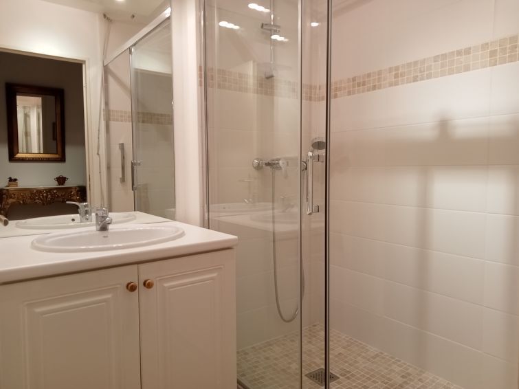 Appartement 2-kamers 50 m2 op de 2e verdieping. Mooi ingericht: woon-/eetkamer met 1 uitschuifbaar bed (2 pers. 2 x 90 cm, lengte 190 cm), TV en air-conditioning. Uitgang naar het terras. 1 kamer met 1 2-pers bed (140 cm, lengte 190 cm), air-conditioning. Keuken (4-pits kookplaat, oven, afwasmachine, magnetron, diepvriezer). Douche, aparte WC. Elektrische verwarming. Terras 12 m2, op het zuidoosten gelegen. Terrasmeubelen. Uitzicht op de tuin. Ter beschikking: wasmachine. Internet (Internet (WiFi), extra). Garage. Rookmelders. 06029003663WF