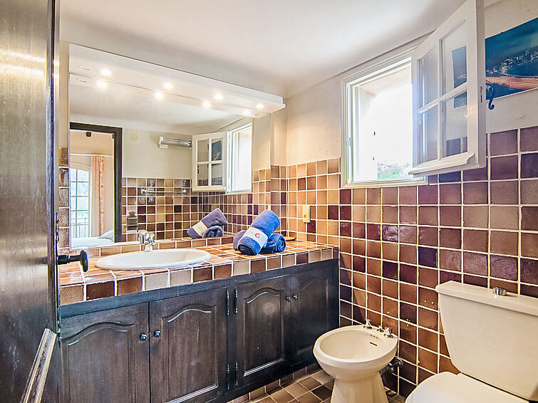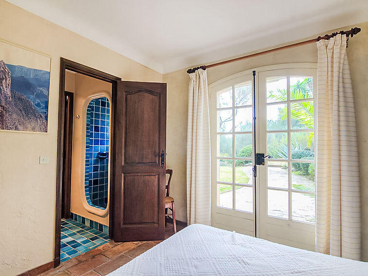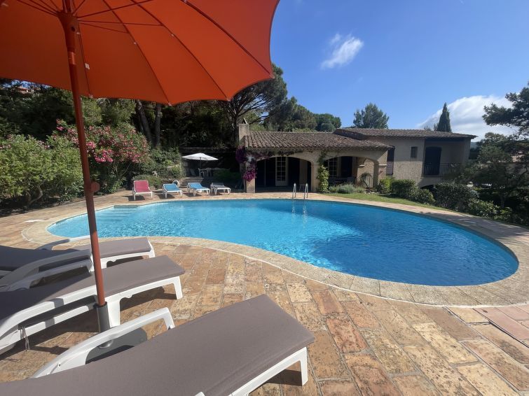 Villa "Mas Baladou". In de wijk Gigaro, buiten de plaats, 2.5 km van het centrum van la Croix Valmer, rustige, zonnige ligging, 600 m van zee, 600 m van het strand. Voor alleengebruik: terrein 2.500 m2 (omheind), verzorgde tuin, openluchtzwembad omheind (11 x 5 m, 80 - 250 cm diepte, seizoensgebonden beschikbaarheid: 01.Jun. - 30.Sep.) met trap. Buitendouche, barbecue, parkeerplaats op het terrein. Winkel 2 km, levensmiddelenwinkel 500 m, supermarkt 2 km, winkelcentrum 8 km, restaurant, bar, café 500 m, bushalte "ZONE ARTISANALE" 4.1 km, zandstrand "D'Héraclée" 750 m, park "Aqualand" 23 km, duikschool 5.9 km. Jachthaven 6 km, zeilschool 5.8 km, midgetgolf 11 km. Attracties in de buurt: Azur Park, Paint-ball 10 km, Bowling à Port-Grimaud 12 km, St-Tropez 14 km, St-Maxime 23 km. Wandelgebied Sentier du Fenouillet 8 km, Sentier du Littoral 200 m, Toulon 66 km. De sleuteloverdracht vindt plaats bij het agentschap Interhome in Cavalaire, 8 km. Uitzichtpunt met zeezicht. Elektrische verwarming. Het zwembad is beveiligd met een barrière. Borgsom: 460 Euro.