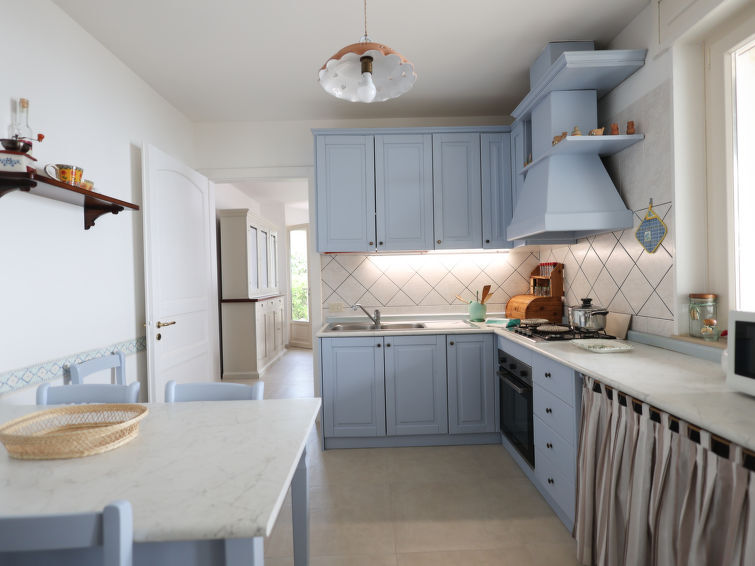 "Grillo-Villa Anna", appartement 3-kamers 85 m2, op de begane grond. Gedeeltelijk gerenoveerd in 2015, comfortabel en gezellig ingericht: woon-/eetkamer met internationale TV-zenders, air-conditioning en heteluchtverwarming. Uitgang naar het terras. Hal met air-conditioning en heteluchtverwarming. 1 2-pers. kamer met 1 2-pers bed. 1 kamer met 2 bedden. Keuken (oven, Gasfornuis, 4 kookpitten (vlammen), broodrooster, magnetron) met eettafel. Douche/bidet/WC. Verwarming, air-conditioning, heteluchtverwarming, boiler (80 liter). Terras 30 m2. Terrasmeubelen, barbecue, ligstoelen (2). Mooi panoramazicht op zee en de plaats. Ter beschikking: strijkijzer, klamboe, kinderstoel, kinderbed tot 2 jaar, haardroger. Internet (WiFi, gratis). Parkeerplaats (1 Auto). Geschikt voor families. Rookmelders, brandblusser. IT075005C200108781